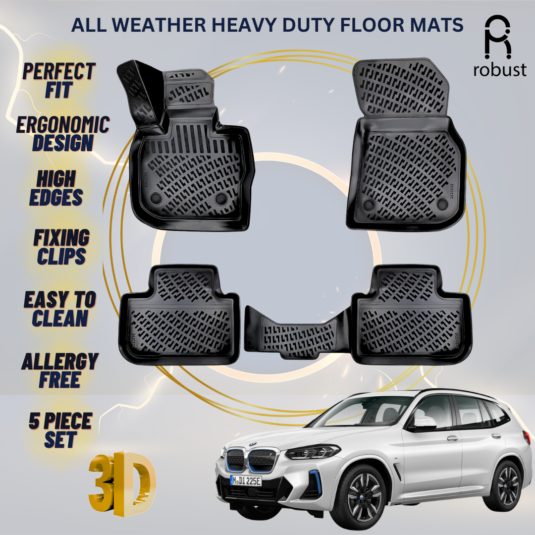 This set includes five mats, offering comprehensive protection for both the front and rear areas of your BMW iX3. The unique design ensuring total coverage and a seamless look.