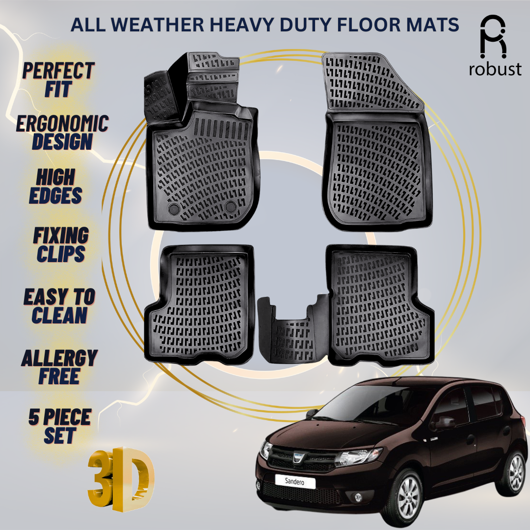 Custom-made to fit your car's exact dimensions, our 3D Floor Mats Liners For Sandero Dacia provide a snug and secure fit. The ergonomic design ensures they not only look great but also offer maximum comfort and safety while driving.