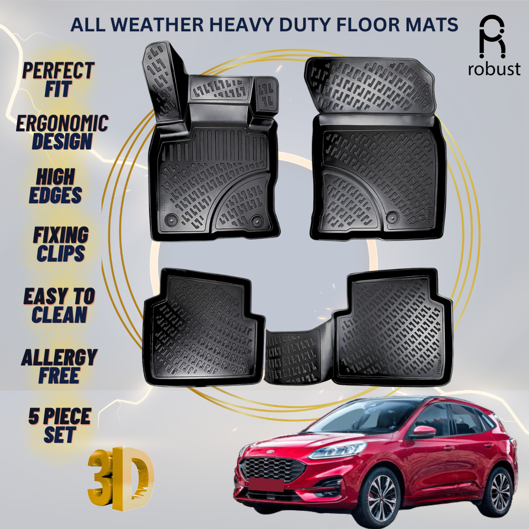 This set includes five mats, offering comprehensive protection for both the front and rear areas of your Ford Kuga. The unique design ensuring total coverage and a seamless look.