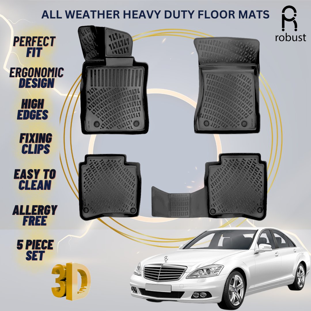 **Upgrade Your Ride with Premium 3D Rubber Car Floor Mats – Eco-Friendly, Durable, and Perfect Fit** **Top-Quality Floor Mats Liners All Weather Heavy Duty 3D Car Rugs **Don't settle for less when it comes to protecting your vehicle. Transform your driving experience with our top-quality 3D All Weather Heavy Duty car floor mats. Designed to provide superior protection and unmatched durability, these mats are the perfect choice for anyone who values both style and functionality in their vehicle. **Why Choose Our 3D Rubber Car Liners?**For:  Mercedes - Benz S-Class W221 2006- 2013 LONG Wheel BaseDO NOT FIT ON Short WHEEL BASE !1. **Impressive Depth and Coverage**:Our 3D rubber liners feature a remarkable 1.58-inch depth, ensuring they catch all dirt, debris, and spills. This full coverage design guarantees that every inch of your car's floor is protected.2. **Complete 5-Piece Set**:This set includes five mats, offering comprehensive protection for both the front and rear areas of your Mercedes S-Class W221 LWB.  The unique design ensuring total coverage and a seamless look.3. **Perfect Fit and Ergonomic Design**:Custom-made to fit your car's exact dimensions, our 3D Floor Mats Liners For w221 Mercedes S-Class Long Wheel Base provide a snug and secure fit. The ergonomic design ensures they not only look great but also offer maximum comfort and safety while driving. 4. **Eco-Friendly and Sustainable**:We care about the environment, which is why our mats are made from eco-friendly TPE rubber. This sustainable material is not only durable and long-lasting but also recyclable, reducing your carbon footprint.5. **Anti-Allergic and Odorless**:Enjoy a cleaner, healthier driving environment with our anti-allergic, odorless mats. They are specially designed to be free from any harmful chemicals and unpleasant smells, making them safe for everyone, including those with allergies.6. **Easy to Clean**:Cleaning these mats is a breeze. Simply remove them from your vehicle, shake off the debris, and rinse with water. They dry quickly and are ready to protect your car's interior once again.7. **Weather Resistant**:Our 3D Heavy Duty Car Rugs For Mercedes Class-S W221 are built to withstand all weather conditions. Whether it’s rain, snow, mud, or dirt, these mats will keep your car’s interior pristine, no matter what the weather brings. **Customer Satisfaction Guaranteed**We stand behind the quality of our products. If you're not completely satisfied with your purchase, please contact us for a hassle-free return or exchange. Your satisfaction is our top priority. Check our store on this  www.ebay.com/str/carpetimats  and find out more.**Order Your Premium  3D Heavy Duty  Floor Mats Liners Today** Invest in the best for your car with our premium 3D Floor Mats Liners. Click the "Add to Cart" button now and enjoy fast shipping and excellent customer service. Upgrade your ride and experience the difference with our top-of-the-line car mats.