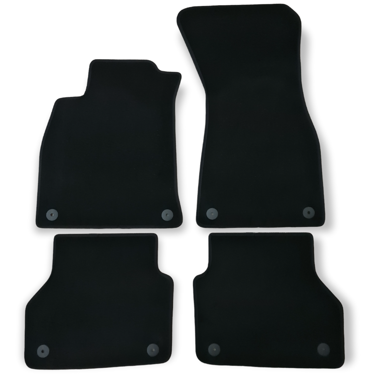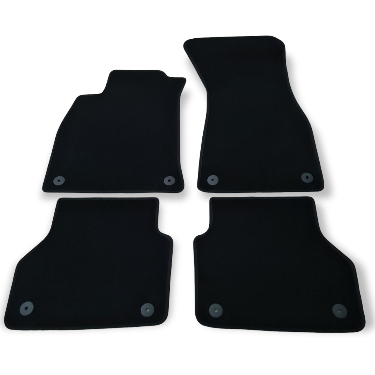 - High premium velour floor mats with edging and integrated decorative seams.