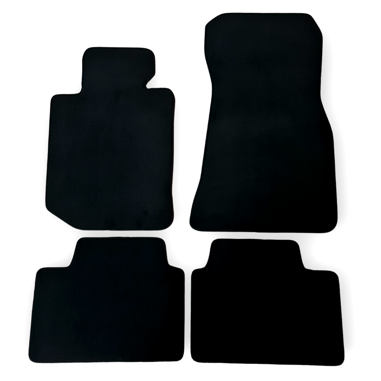 - High premium velour floor mats with edging and integrated decorative seams.