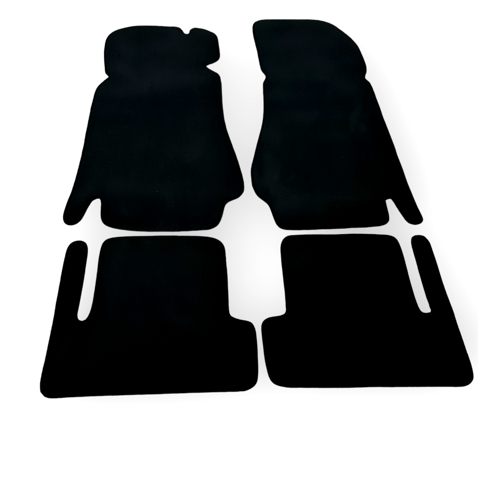 - High premium velour floor mats with edging and integrated decorative seams.
