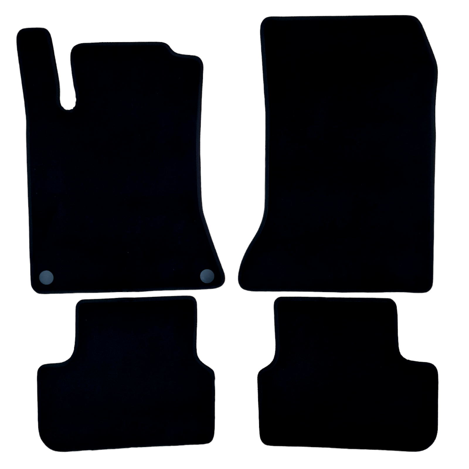 - High premium velour floor mats with edging and integrated decorative seams.