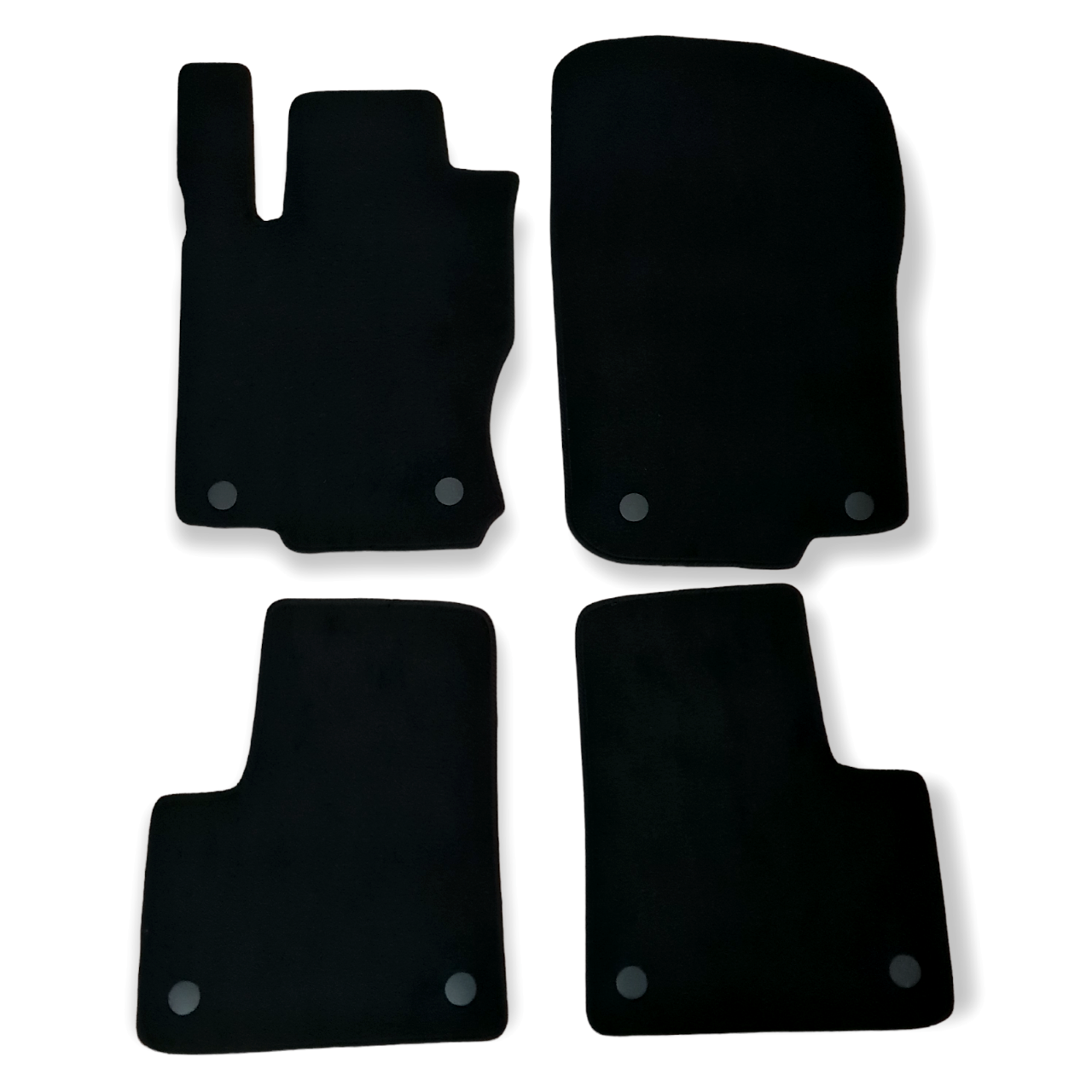 - 4-piece set includes driver mat, passenger mat, and two rear mats.