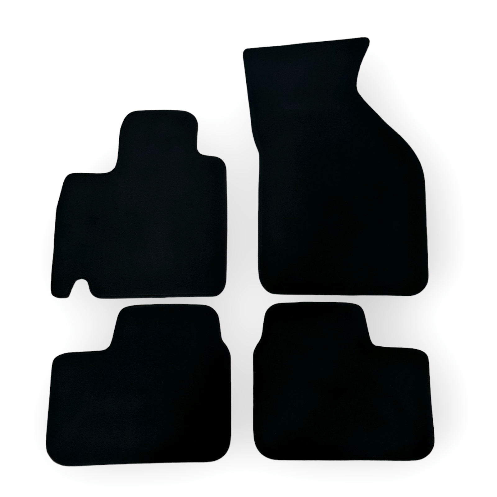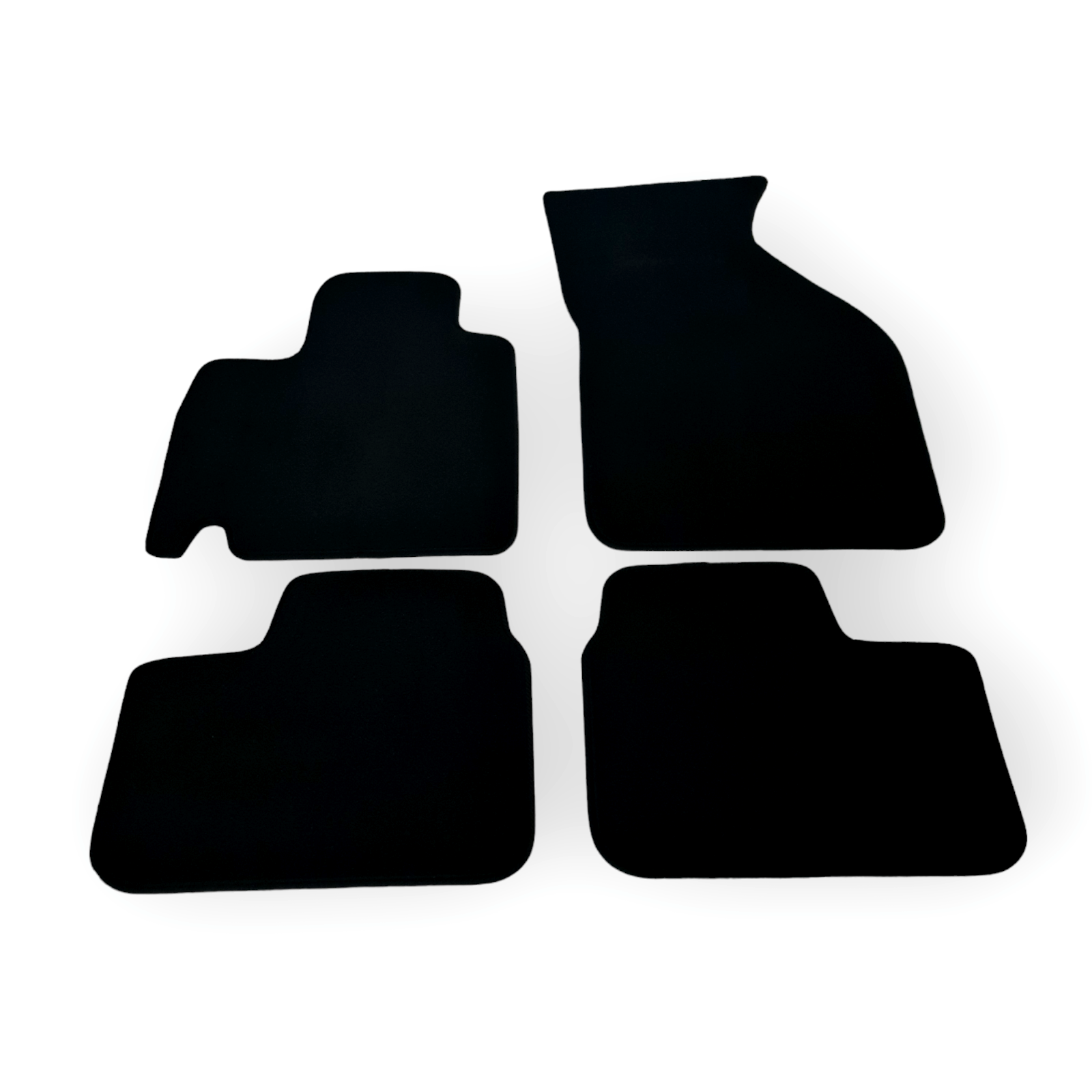 - High premium velour floor mats with edging and integrated decorative seams.